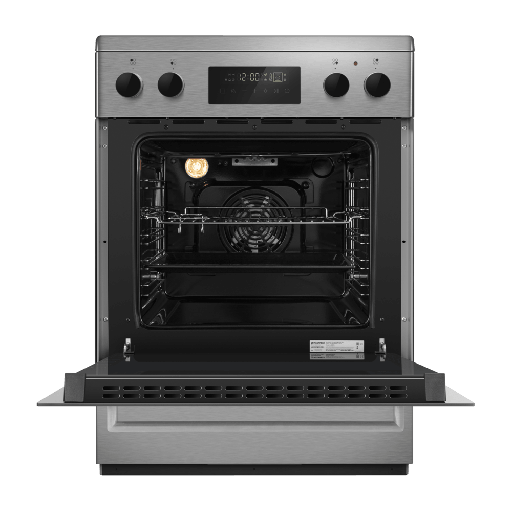 В духовом шкафу объёмом 59 л предусмотрено 15 функций и продуманная конвекция для равномерной пропекания. Съёмное тройное стекло дверцы, рецепты на дверце и хромированные направляющие делают процесс приготовления ещё удобнее, а освещение камеры помогает контролировать результат в любой момент.