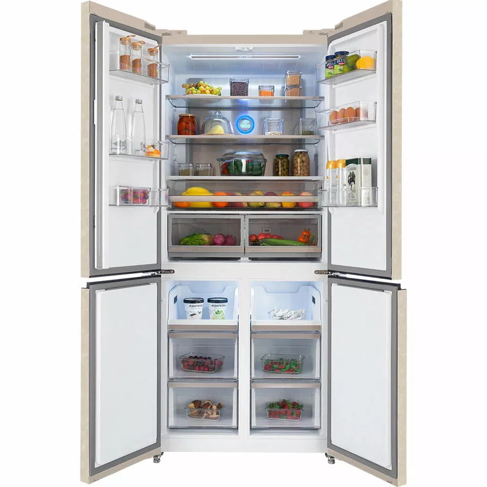 Мембранная технология автоматического поддержания уровня влажности до 90%. В интеллектуальном режиме управления температура внутри холодильника настраивается автоматически. Ящики в холодильной камере выдвижные на направляющих. Один из ящиков в холодильной камере имеет гибкую настройку температуры, где можно выбрать один из предустановленных режимов: напитки, мясо или фрукты.