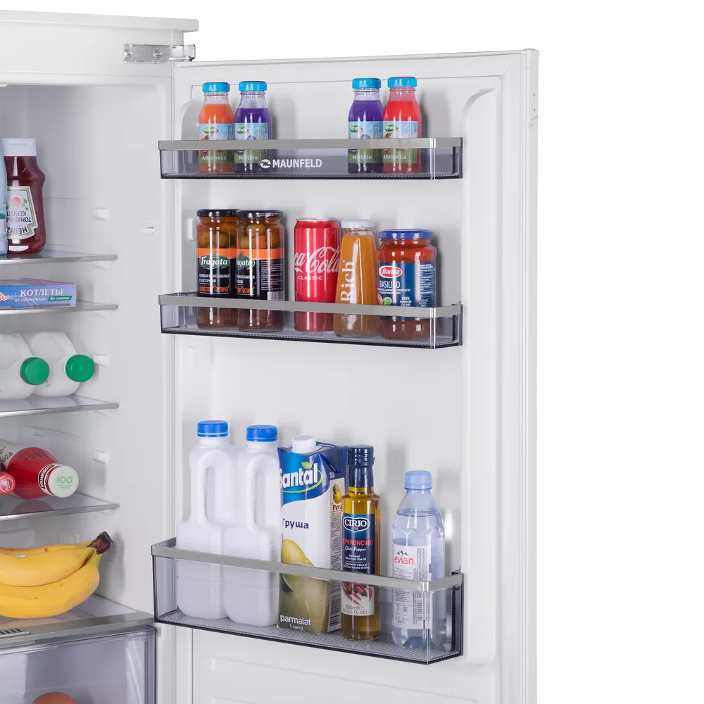 Встраиваемый холодильник с инвертором MAUNFELD MBF177SWGR Inverter — практичное решение для аккуратной интеграции техники в кухонный гарнитур и комфортного повседневного использования. Модель легко вписывается в высокий шкаф и помогает поддерживать порядок внутри камер.