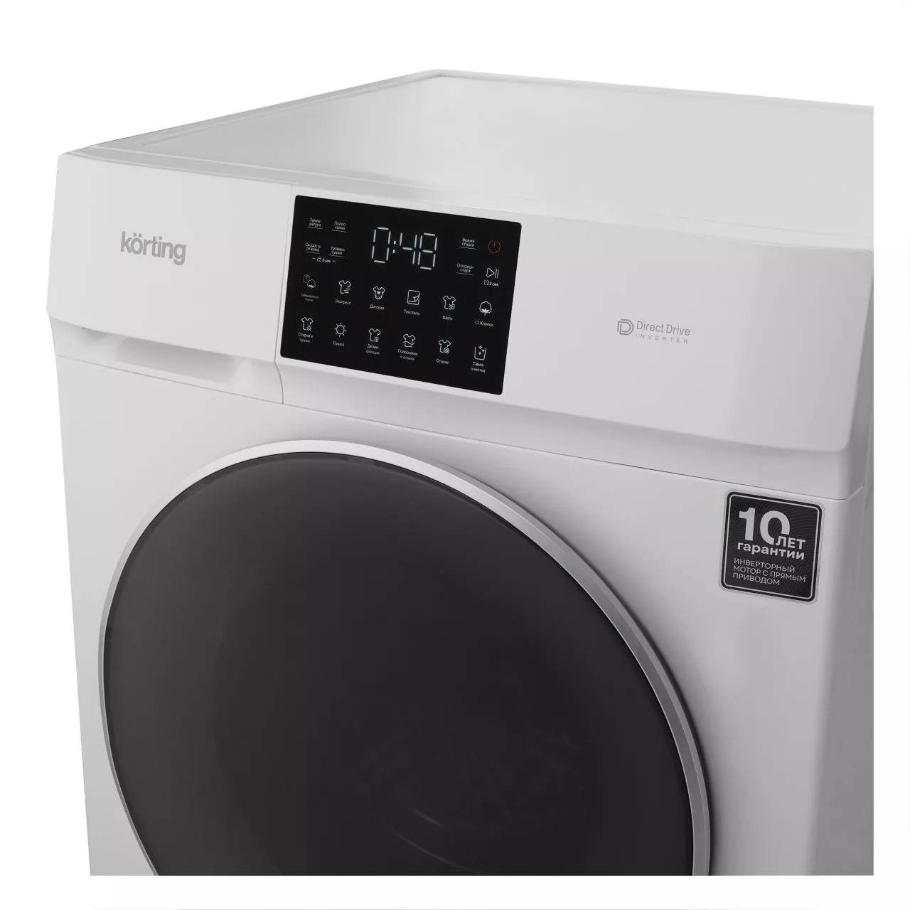 Инверторный мотор с прямым приводом гарантирует высокую производительность, тихую работу и долговечность. Система контроля пенообразования и баланса барабана обеспечивает стабильность и качество стирки. Для безопасности предусмотрена защитная крышка люка, которая исключает контакт с нагретым стеклом и предотвращает скопление пыли.