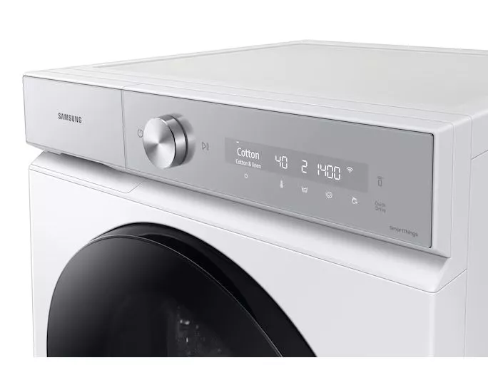 Минималистичный дизайн серии BESPOKE с дверцей из закаленного стекла органично вписывается в современный интерьер и удобен в ежедневном использовании, а управление на базе ИИ и интеграция со SmartThings делают каждую стирку ещё проще.