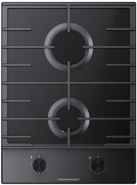 Газовая варочная панель Kuppersbusch VKG 3850-0 SE E5 из дизайн-линии K-series.8 — это элегантное и компактное решение для современных кухонь, сочетающее премиальный дизайн, продуманную эргономику и повышенную безопасность. Модель выполнена в строгом черном цвете с поверхностью из стеклокерамики и обработкой края без рамки, что создает эффект полной интеграции в столешницу даже при накладной установке. Панель оснащена двумя газовыми конфорками разной мощности: задняя мощная конфорка 2.8 кВт для быстрого кипячения и приготовления в большой посуде, передняя 1.75 кВт для тушения и томления. Медные горелки обеспечивают стабильное и равномерное распределение тепла, а чугунные решетки надежно фиксируют посуду и выдерживают значительные нагрузки. Эмалированные крышки защищают горелки и служат эстетичной декоративной деталью. Механическое управление с поворотными переключателями и фронтальным расположением обеспечивает интуитивную регулировку пламени. Встроенный электроподжиг и система безопасности газ-контроль делают использование максимально комфортным и безопасным.