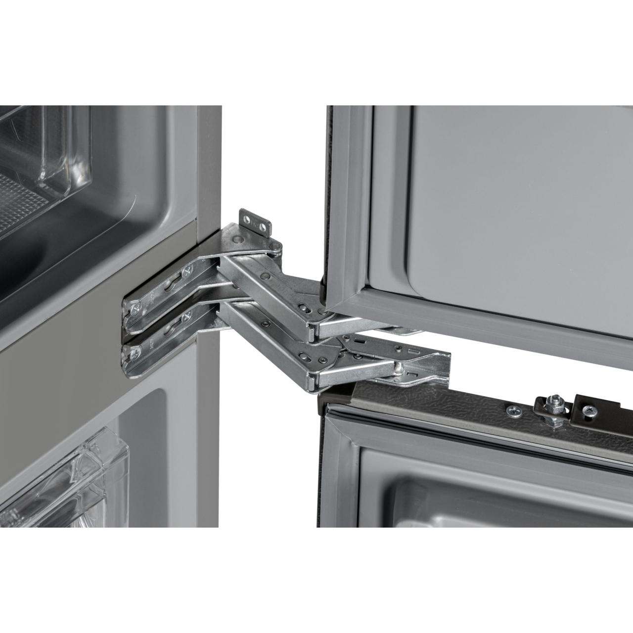Встраиваемый холодильник HIBERG i-RFCB-400F NF с инверторным компрессором, автоматической системой охлаждения Total No Frost и электронным управлением — идеальный выбор для встраивания в кухонный гарнитур и создания комфортного пространства на кухне. Двери холодильника можно повесить на правую или левую сторону. Это позволяет открывать их в удобном направлении и устанавливать технику в любом месте. Корпус, как и внутренняя часть модели стильного серого цвета.